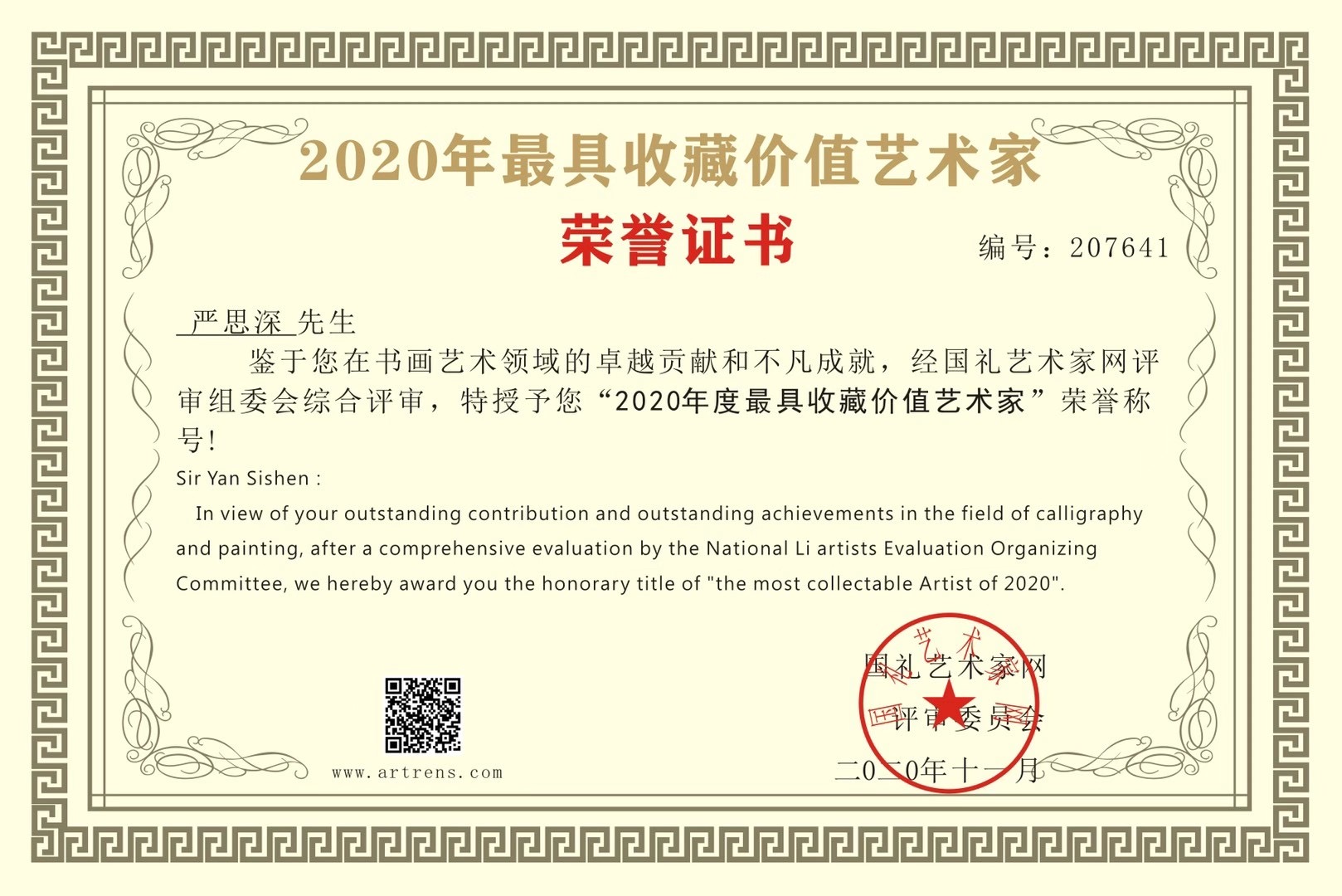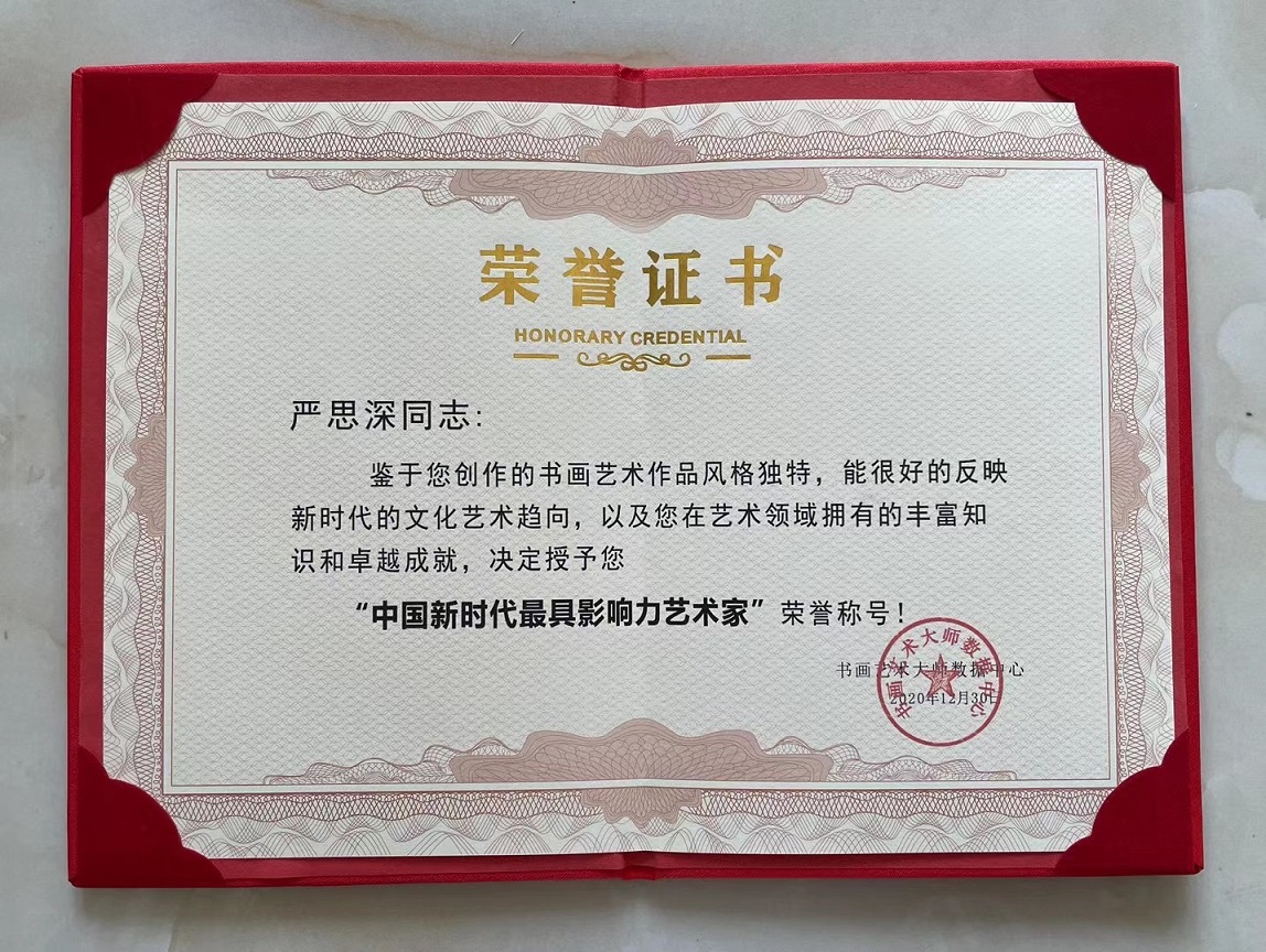 2020年度荣获“最具收藏价值艺术家”,和“中国新时代最具影响力艺术家”称号。