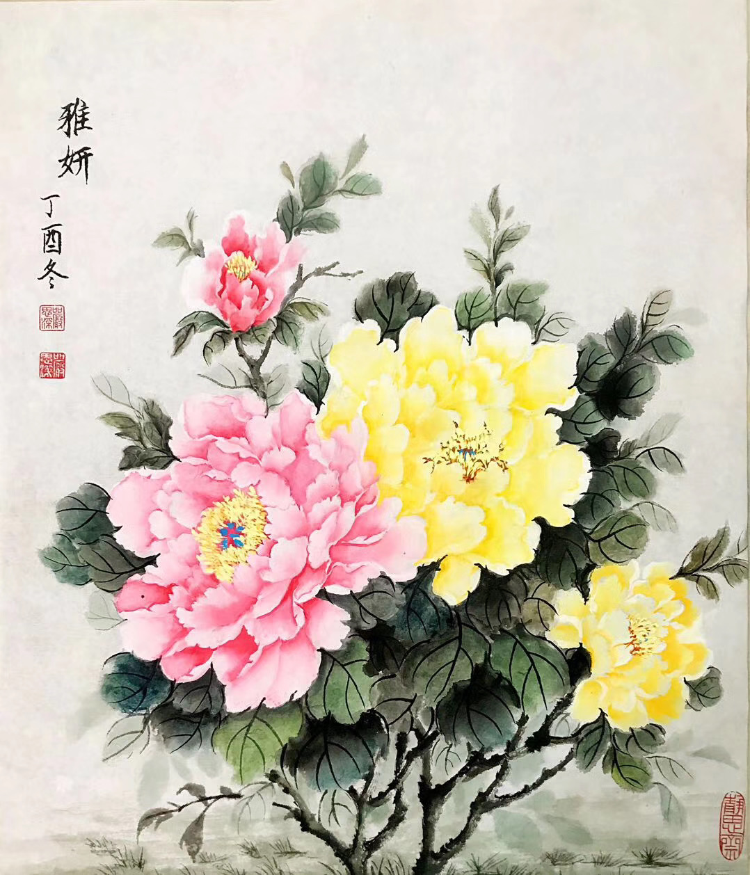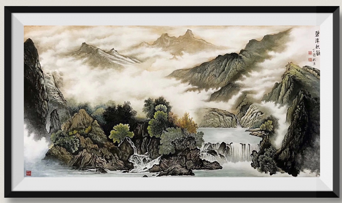 严先生擅长写意花鸟,和现代彩墨山水画。他特别注重研究各种牡丹的画法,小写意,大写意,和写工兼合的牡丹。他的虫鸟花卉不但古典幽雅,而且细腻具象,让人尝心悦目,爱不释手。严先生无论是传统山水,还是现代彩墨山水,两种画法都精于在手。他的山水画,构图独具匠心,气势宏伟磅礴,整个画面豪放,深远和空灵,让观者沉醉于山水之中……